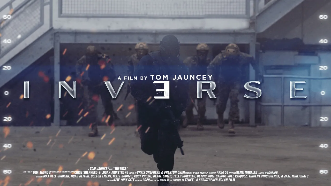 Inspired by Christopher Nolan's Tenet, Tom Jauncey directed a remake called INVERSE. The short film followed the protagonist, Snake, as he reversed time to retrieve the vaccine while soldiers chased him. Using cinematography, FPV cinewhoop drone footage, and VFX, we replicated the feel of Tenet, with the location matching its intense vibe.